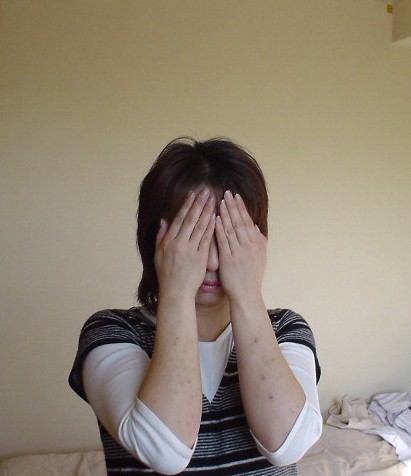 両目の場所ですが、顔には直接触らず、少し浮かせます |