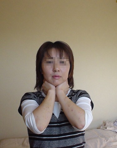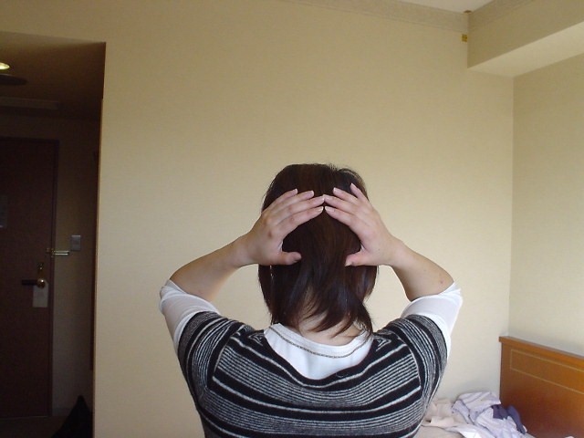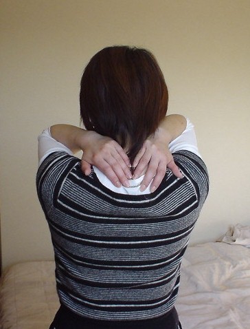手をおく位置は、首ではなくて肩口に置く 手の重さが加わらないように注意する |